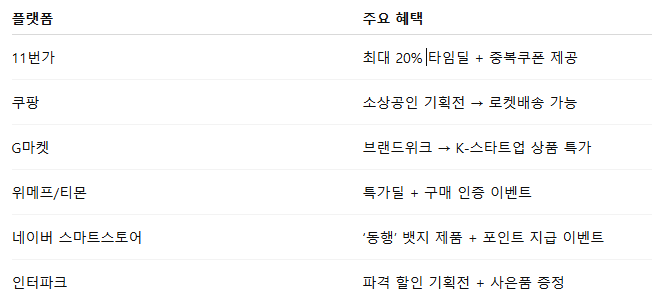 실속형 소비자는 이 기회를 통해 품질 좋은 국산 제품을 합리적인 가격에 구입하고, 소상공인은 판매량을 높이는 일석이조의 효과를 누릴 수 있습니다.