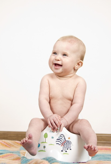 처음에는 옷을 입은 상태로 앉아보게 하고, 익숙해지면 기저귀를 벗고 시도해 보세요.