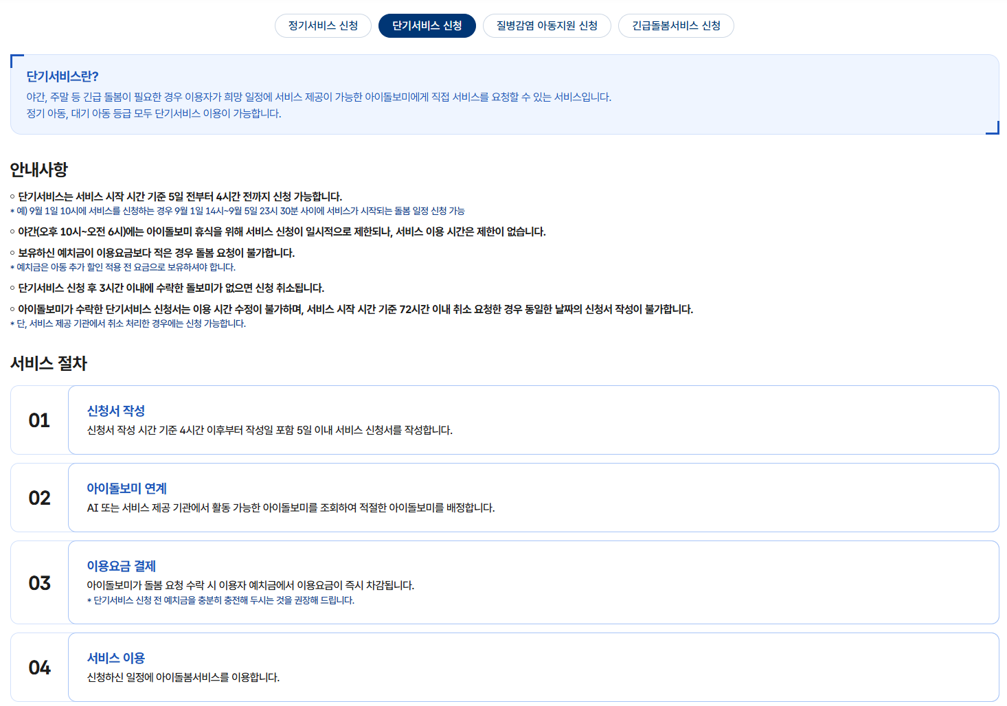 부모의 출장, 야근, 병원 방문 등으로 인한 일시적 돌봄 지원