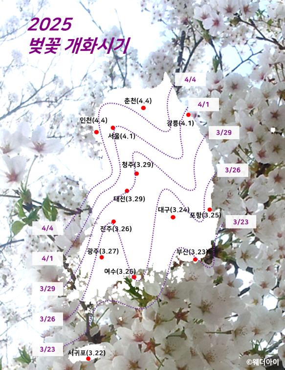 📌 2025년 벚꽃 개화 예상 시기 (평년보다 3~8일 빠름)