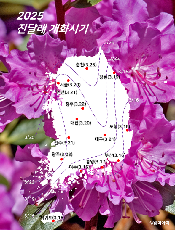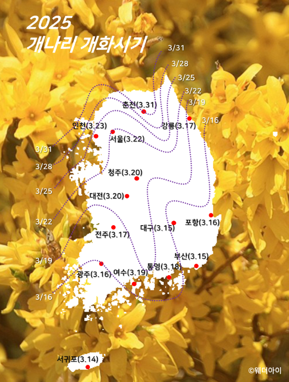 기상청과 여러 기상 전문 기관들은 2025년 봄꽃 개화 시기를 다음과 같이 전망하고 있습니다.