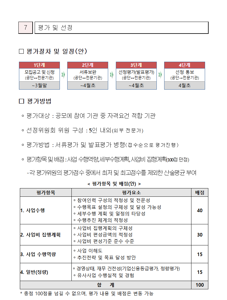 평가방법과 평가항목, 배점을 잘 확인 하시고 신청서를 작성하기길 바랍니다.