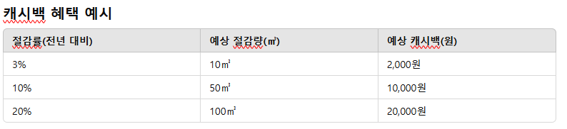 절감량에 따라 1㎥당 최대 200원의 캐시백 지급