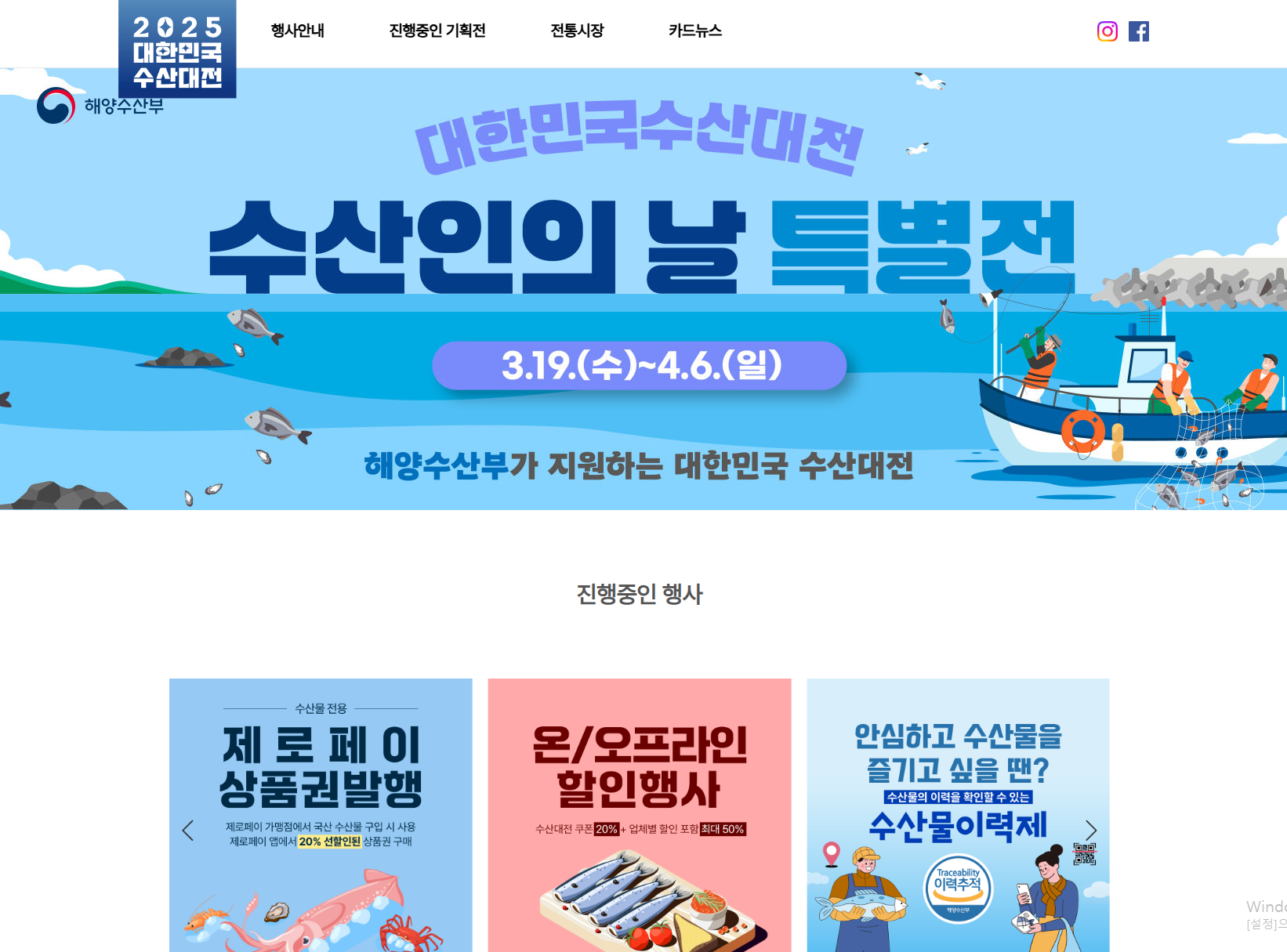 정부에서 수산인의 날, 2025년 3월 19일부터 4월 6일까지 약 3주간 국산 수산물을 최대 50% 할인된 가격으로 구매할 수 있습니다.