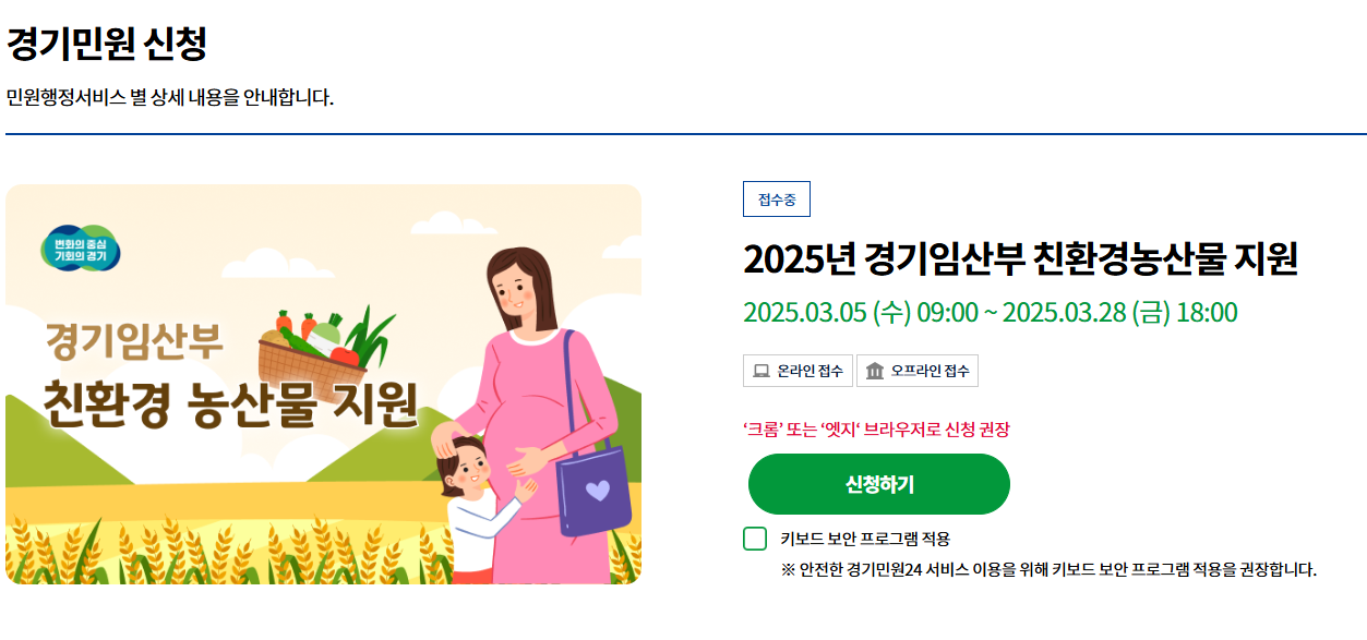 경기임산부 친환경농산물 지원 신청 방법 및 이용 안내