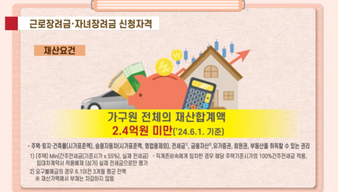 2024년 6월 1일 기준으로, 본인 및 배우자의 총 재산 합계가 2억 원 미만이어야 합니다.