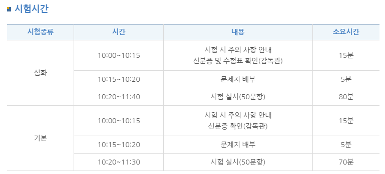 총 50문항(객관식, 100점 만점)으로 출제되며, 급수는 점수에 따라 자동 부여됩니다.
