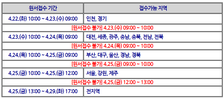 지역마다 원서 접수 기간이 다르니 꼭 확인하시고 신청하세요!